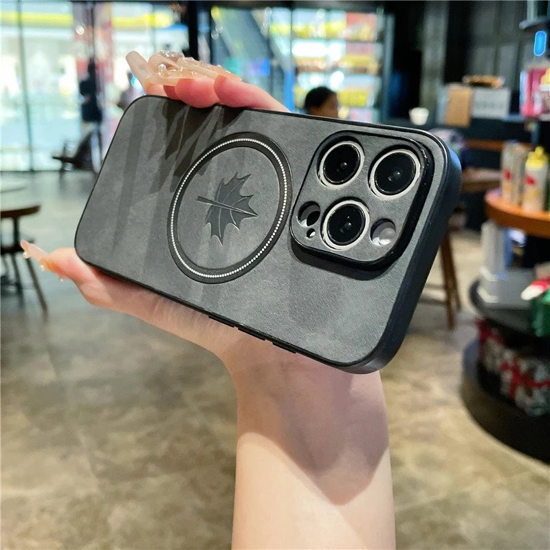 Stilvolle MagSafe Lederhülle Deer Maple für iPhone 17 Air und 16 Pro Max. Das schlanke Leder-Design mit Magnetfunktion unterstützt MagSafe & kabelloses Laden und schützt Ihr iPhone stilvoll und zuverlässig.